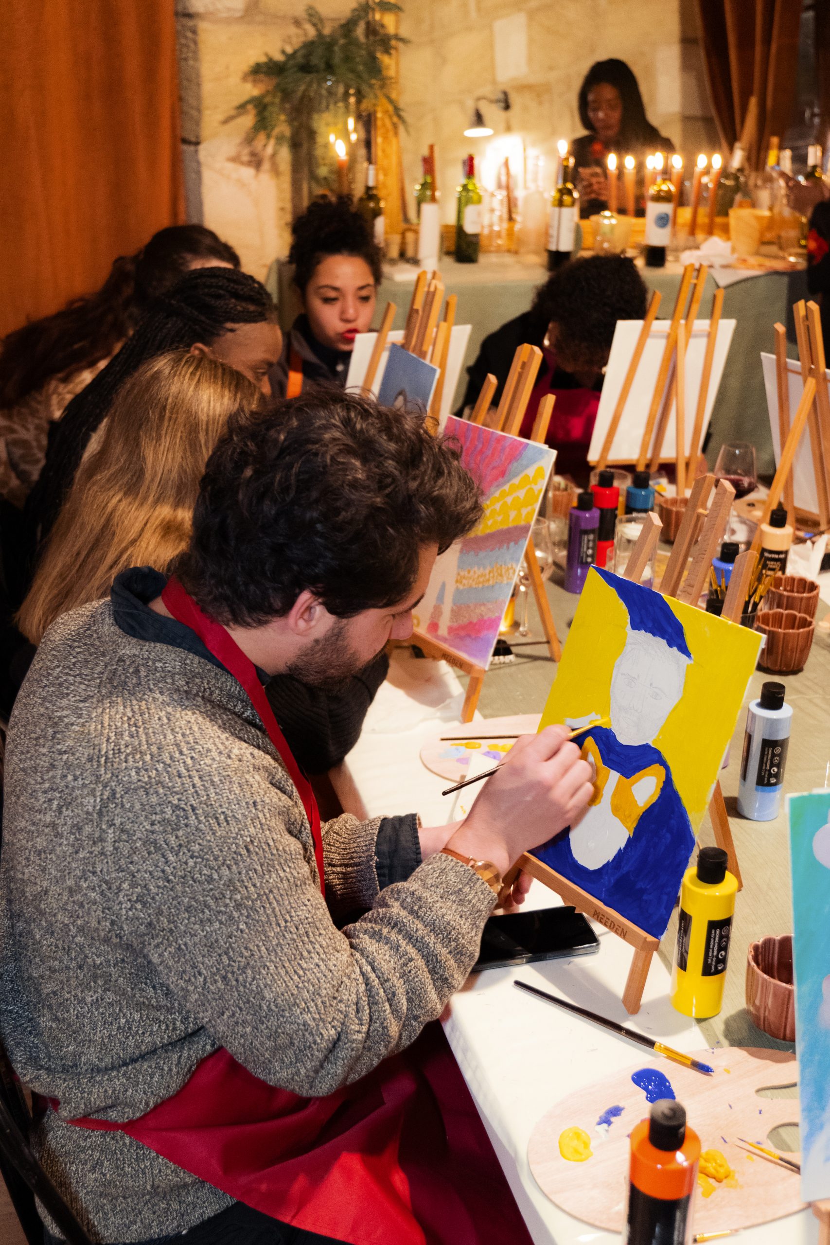 Et surtout, un.e animateur·trice survolté.e est là pour te faire rire, t’inspirer, et te guider même si ton pinceau part en freestyle, elle t’aidera à créer quelque chose de stylé ou au moins à en rire !